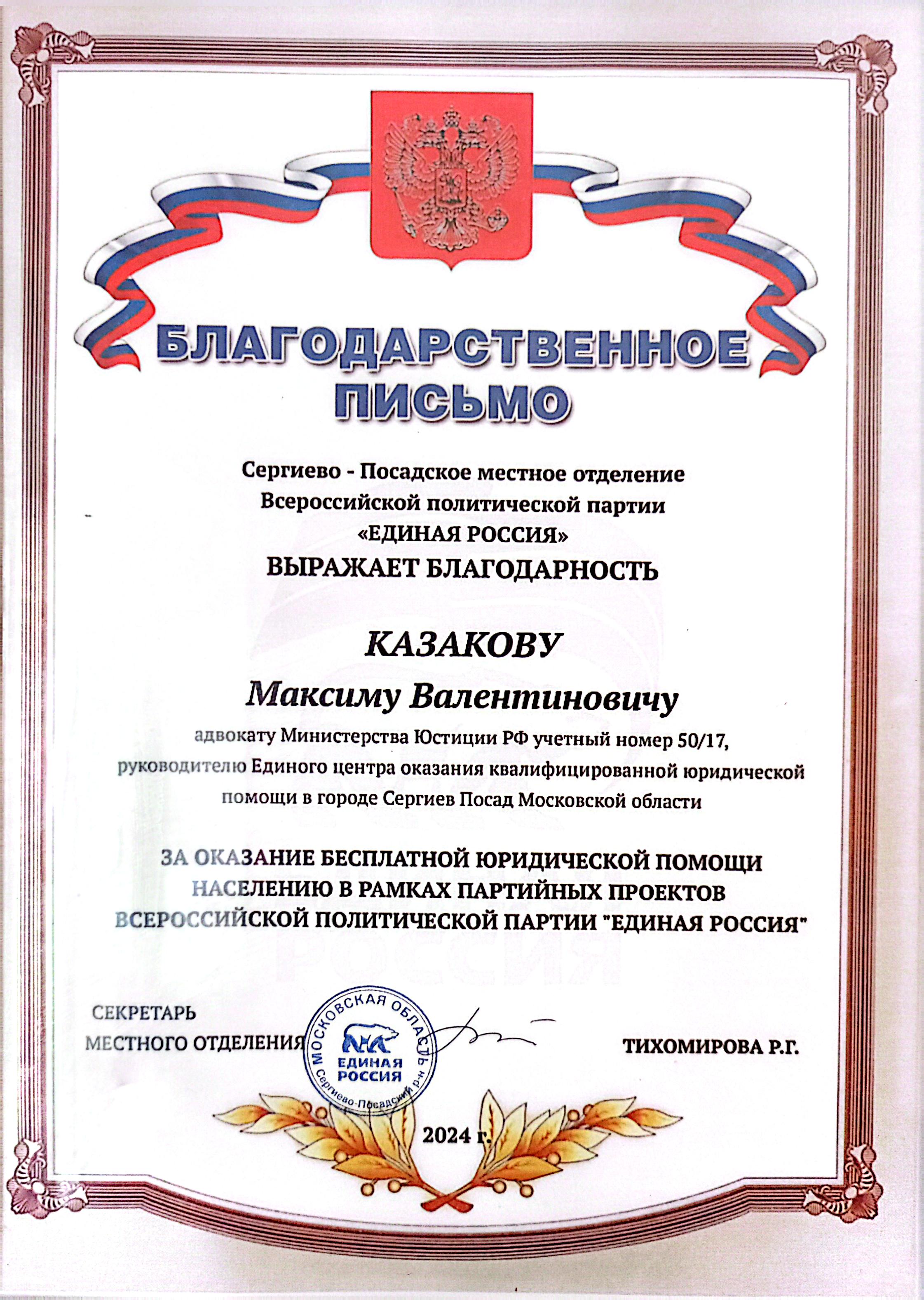 Руководитель Единого Центра квалифицированной юридической помощи в г. Сергиев Посад Московской области